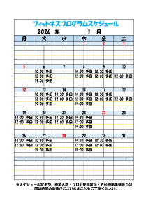 1月のジムカレンダーとフィットネスプログラムスケジュール