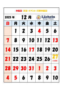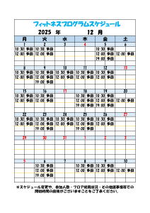 12月のジムカレンダーとフィットネスプログラムスケジュール